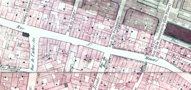 Intersections avec les rues de l'Arbre-sec, Roule et Tirechape (Plan SHD 1820-1833)[2].